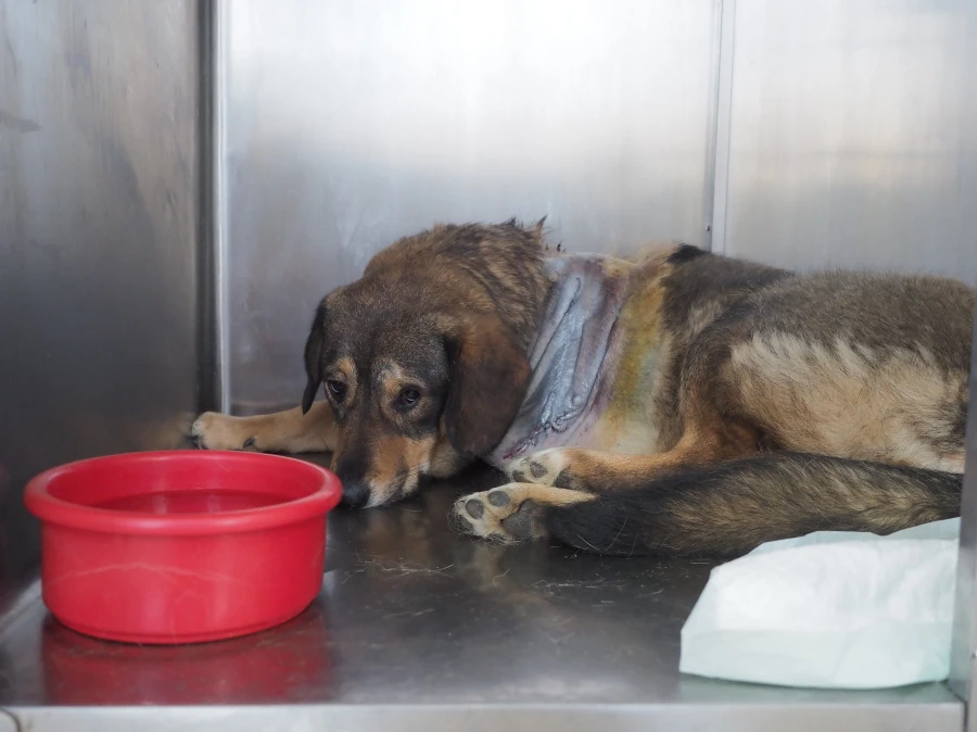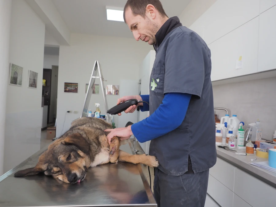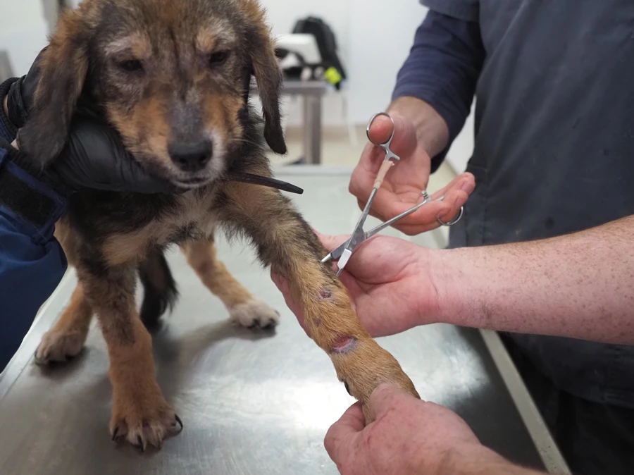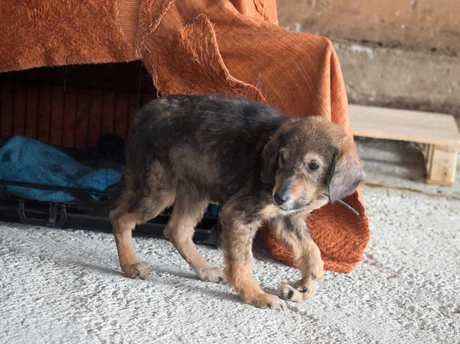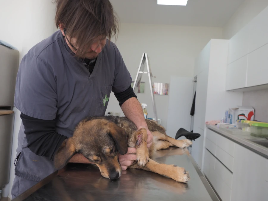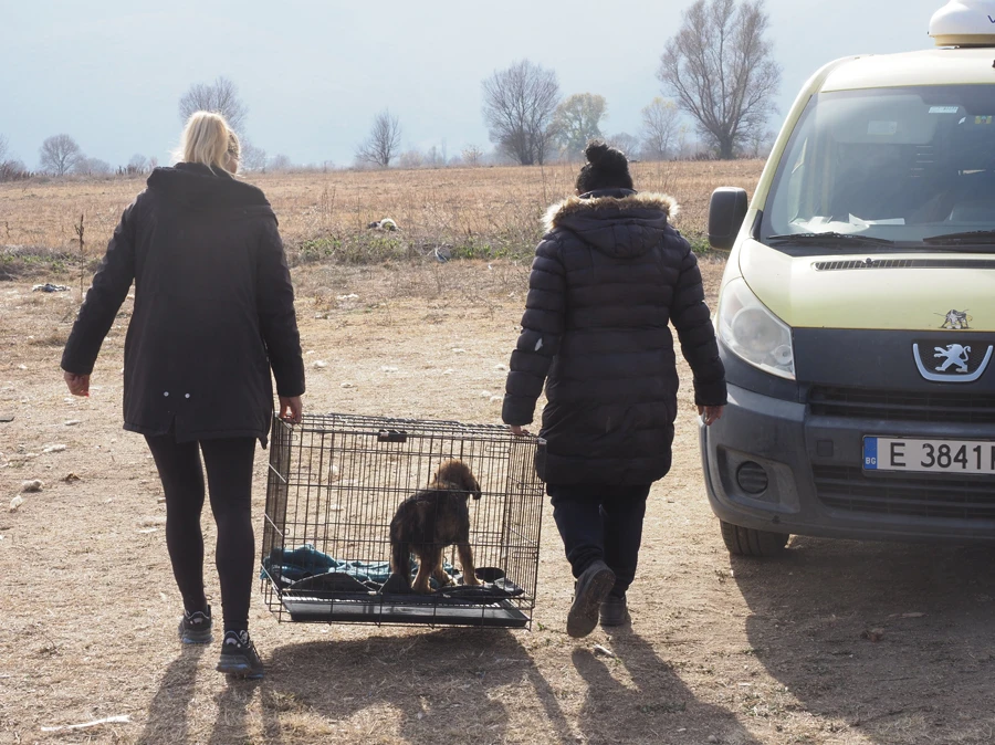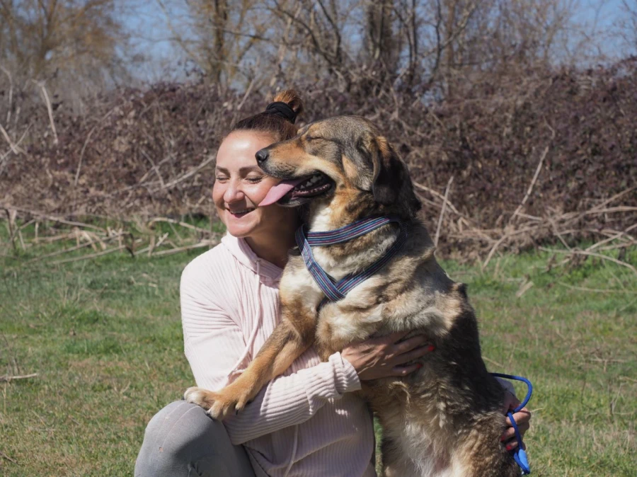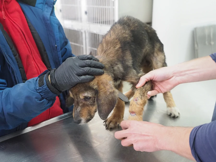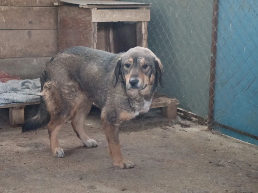 Animal lovers find Gyultena in a ditch by the side of a road. They have to approach the dog very gently, as she barely lets anyone come close and certainly won’t let anyone touch her. Therefore, they simply stay nearby. She needs to get used to the presence of people first. Then they take the dog to our rescue centre.