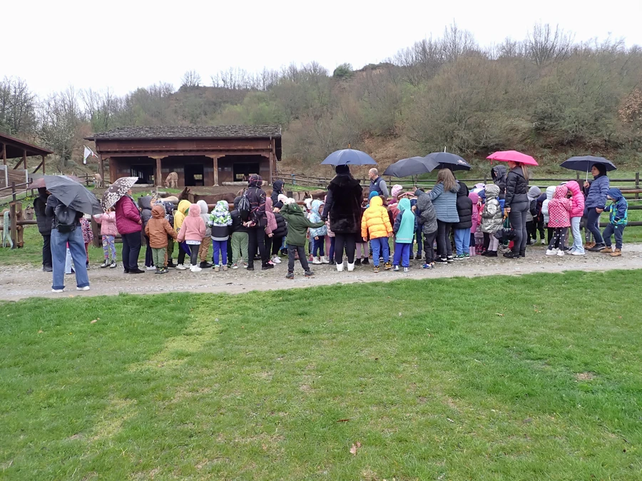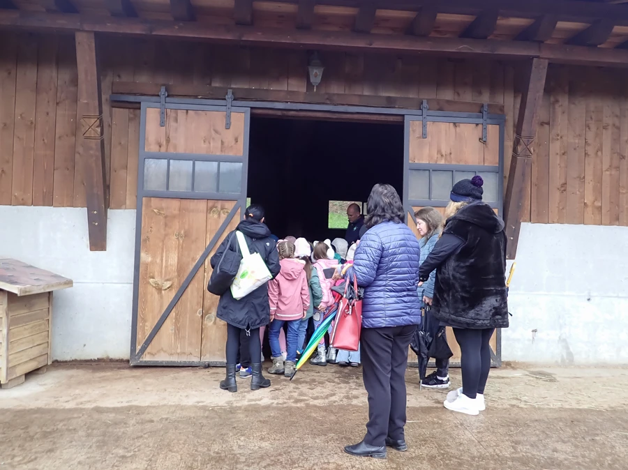 Hier dürfen die Kinder bis zum Stall vordringen, damit sie alles einmal von einer anderen Perspektive aus sehen können. Unsere jungen Besucher sind neugierig und auf die neu erworbenen Kenntnisse fokussiert.