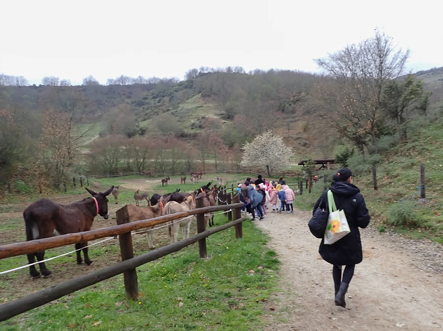 Der Regen lässt nach und das Wetter schenkt uns eine Atempause, während wir die Ställe besuchen. Einige Esel wagen sich trotz des schlechten Wetters ins Freie, aber die meisten verstecken sich in den Ställen. Wir überlegen uns, wie wir diesen Ausflug für die Besucher interessanter machen können; es soll sich doch lohnen!