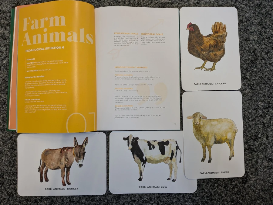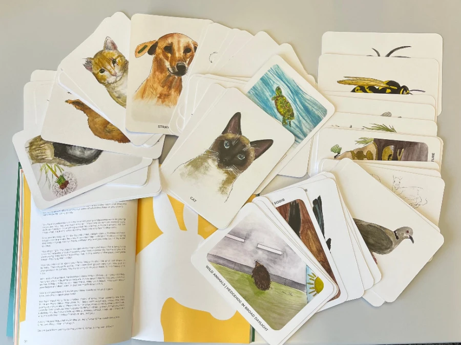 Die Kinder spielen mit 100 illustrierten Frage-und-Antwort-Karten und lernen dabei gleichzeitig etwas über die verschiedenen Tiere, ihre Eigenheiten, Vorlieben und Verhaltensweisen.