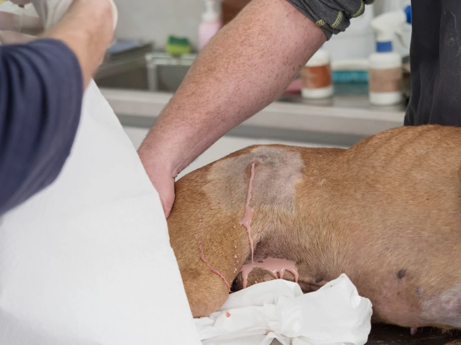Einen Monat später will Brownie plötzlich nicht mehr fressen. Er macht einen resignierten Eindruck und interagiert weder mit Menschen noch mit Hunden. Still und leise beginnt er, zu zerfallen. Seine Retter rufen uns an mit der Bitte, ihn in unserer Klinik zu untersuchen.