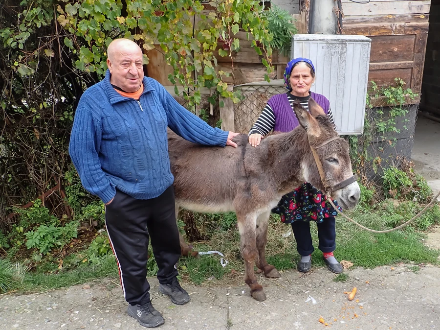 Georgi hat einen liebenswürdigen, ruhigen Charakter. Man sieht gleich, dass er immer gut behandelt und gepflegt wurde. Seine Besitzer erzählen uns, dass sie ihn immer frei grasen lassen wenn es nichts zu arbeiten gibt, aber er streunt nie mehr als ein paar Tage herum.